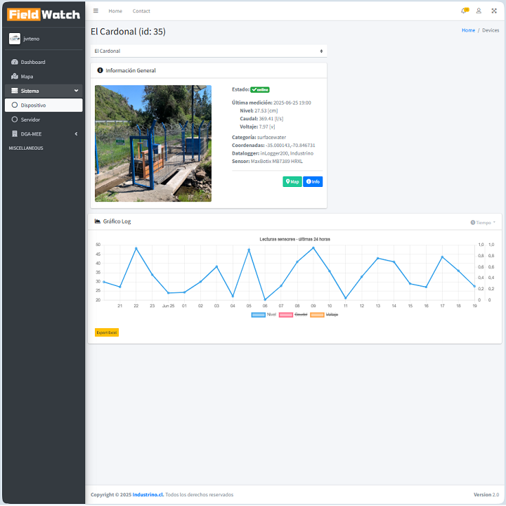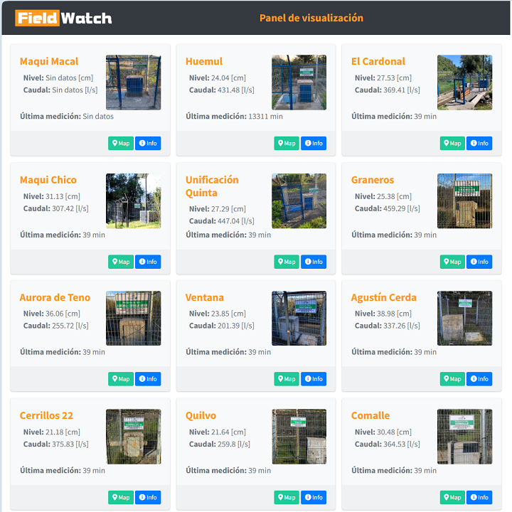 Se diseña y desarrolla una plataforma web general para integrar 17 estaciones (canales), perteneciente a la red de distribución de agua de la Junta de Vigilancia del Río Teno. Los trabajos incluyeron: