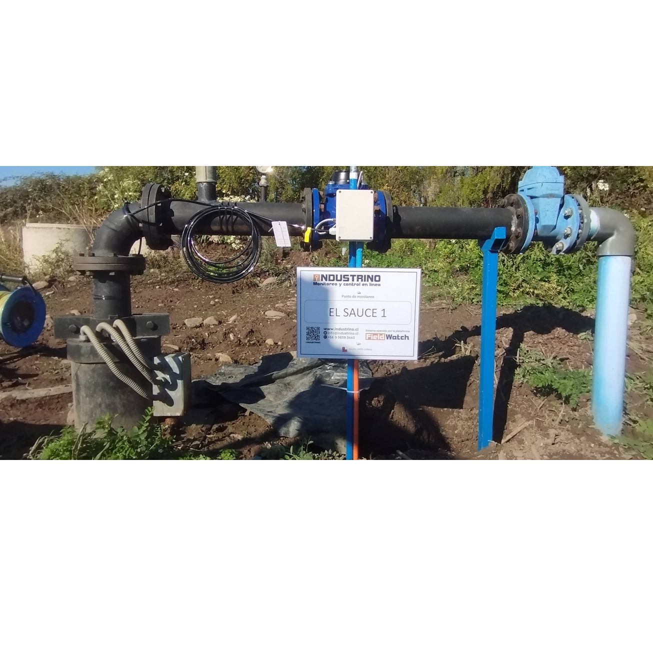 Se instala un sistema de monitoreo en línea con transmisión celular y reporte al software MEE de la DGA en el pozo de extracción El Sauce 1, perteneciente a un privado del sector. Los trabajos incluyeron: